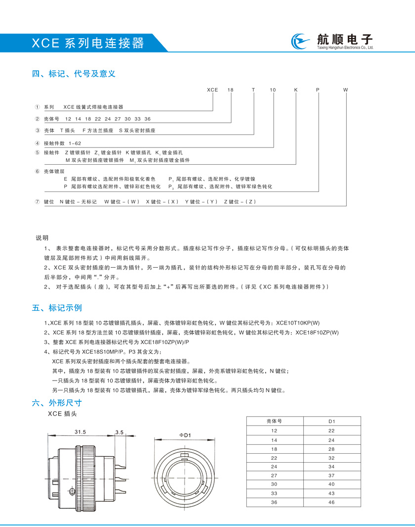 XC系列航空插頭