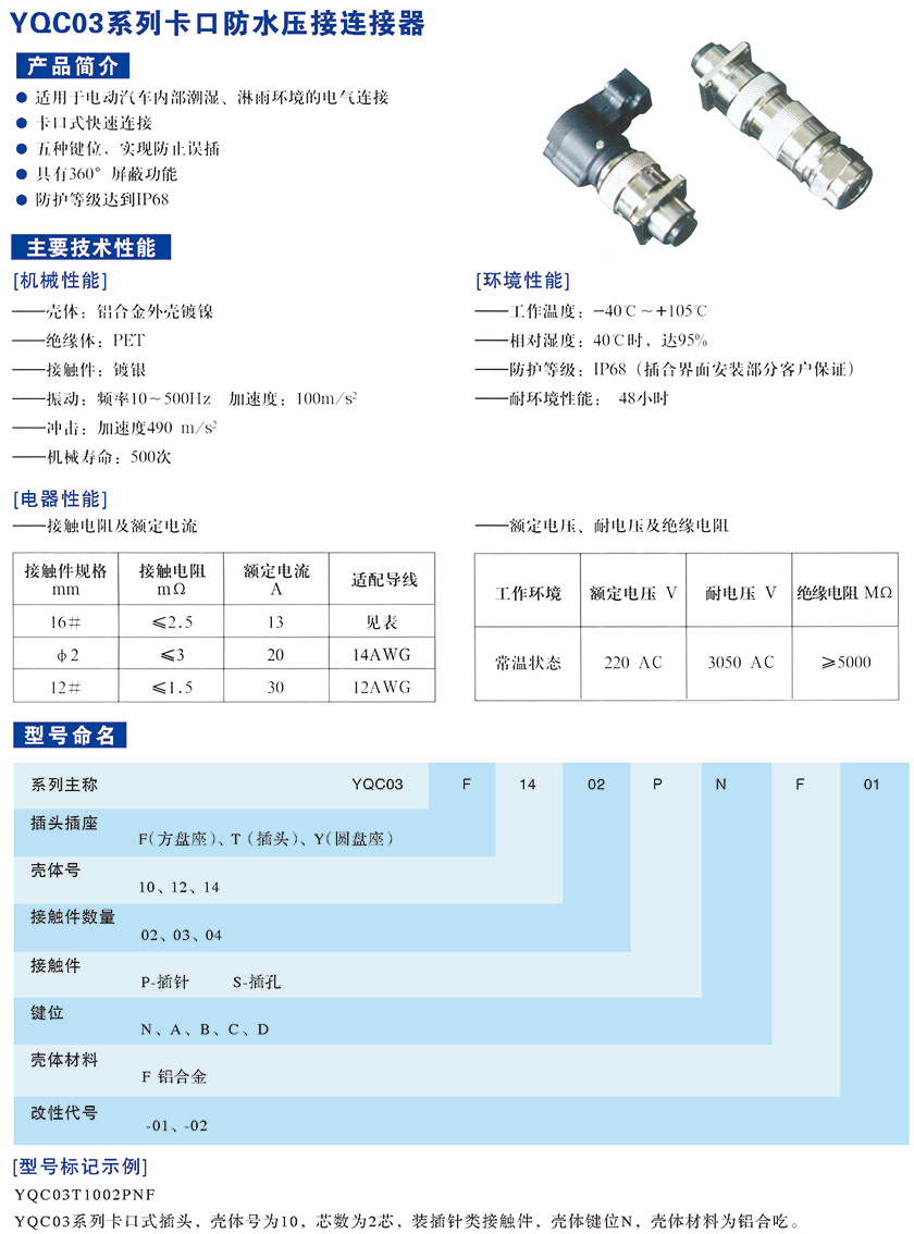 YQC02DT系列卡扣式電連接器