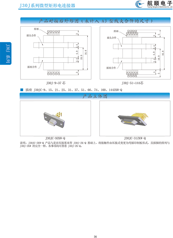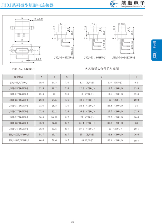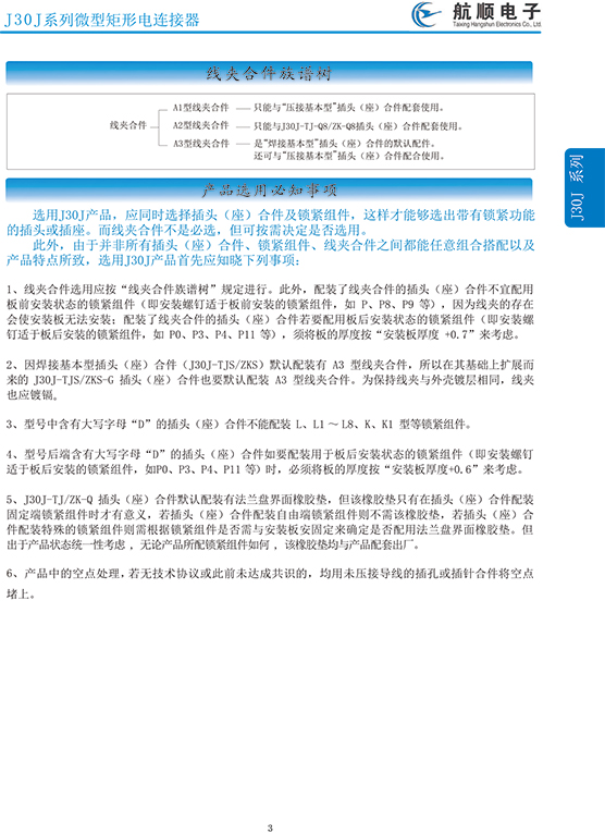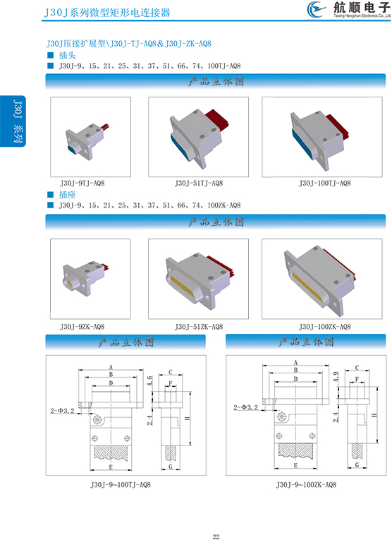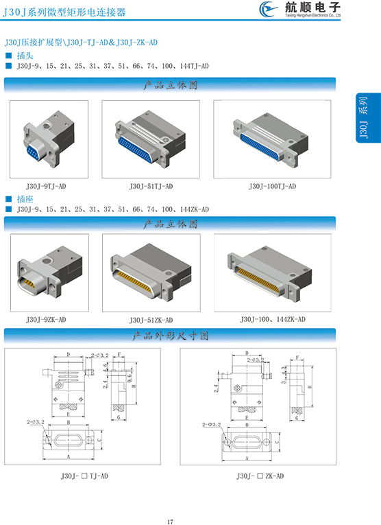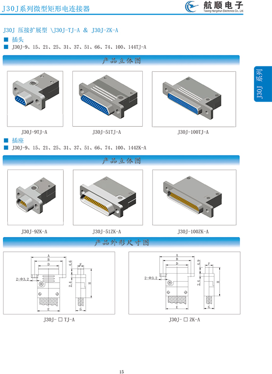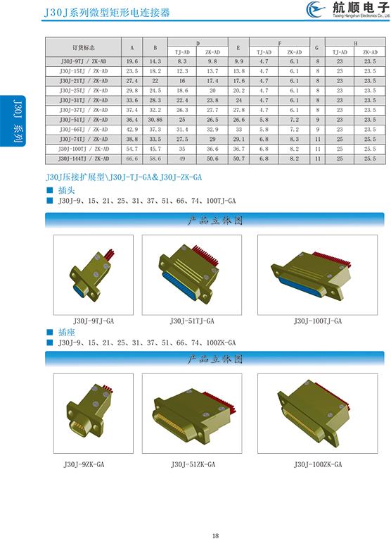 符合GJB2446《外殼定位超小型矩形電連接器總規(guī)范》(相當(dāng)于美軍標(biāo)MIL-C-83513),可與美國(guó)MDM系列產(chǎn)品和國(guó)內(nèi)同類產(chǎn)品互換,在J30系列產(chǎn)品的基礎(chǔ)上增 加了鋁合金外殼與各種鋁合金尾夾;采用絞線式插針 (俗稱麻花針),單個(gè)接觸件接觸點(diǎn)達(dá)七個(gè),提高了產(chǎn)品的接觸可靠性;采用1.27mm網(wǎng)格,接觸件密度大、體積小、重量輕;現(xiàn)有9、15、21、25、31、37、51、66、74、100芯共十種型譜可供選用;適用導(dǎo)線線芯 截面積為0.07~0.15mm2,尾端可以根據(jù)用戶要求進(jìn)行 布線;本產(chǎn)品的鎖緊組件按與產(chǎn)品組裝在一起提供,如不需鎖緊組件請(qǐng)?jiān)诤贤凶⒚?;本系列產(chǎn)品滿足GJB2446《外殼定位超小型矩形電連接器總規(guī)范》的 要求;本系列產(chǎn)品的執(zhí)行標(biāo)準(zhǔn)如下:Q/ZHDZ GC-18《J30J系列微矩形電連接器詳細(xì)規(guī)范》。
